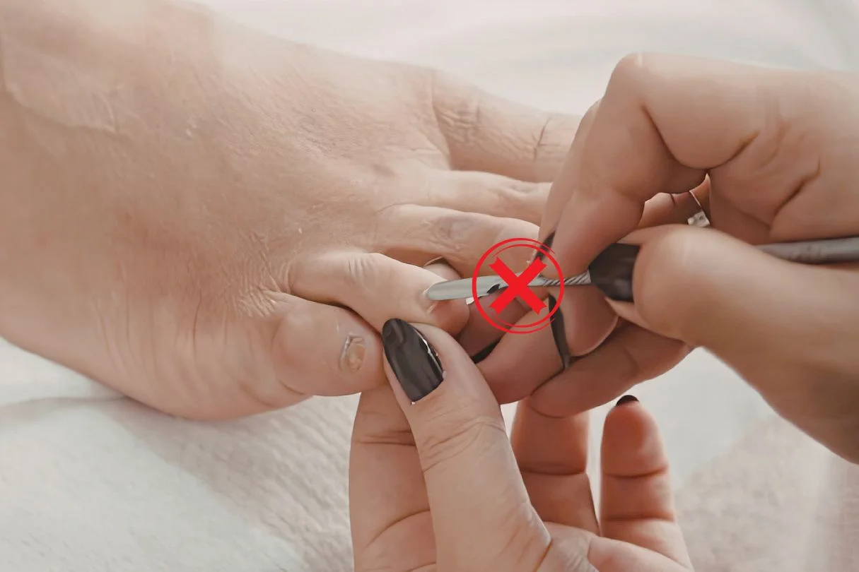 - Cuticle disruption during pedicures – cutting or aggressively pushing back the cuticle removes the barrier between the nail plate and nail fold, leaving the periungual tissue directly exposed