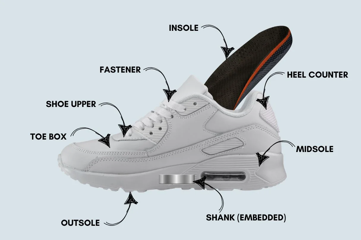 The shank of the shoe is like a stiffener at the centre of the midsole. The purpose of a shank is to control the amount of torsion and flexibility of the footwear. Our midfoot is not meant to move much and should be firm and stable as we propel forward. A stiff shank will provide a stable platform for the foot to rest on.